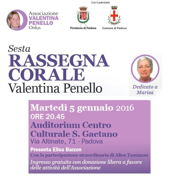 per la cena natalizia di sabato 19 dicembre e per laconsueta Rassegna corale in onore di Valentina e anche per ricordare la nostra cara socia e amica Marisa.